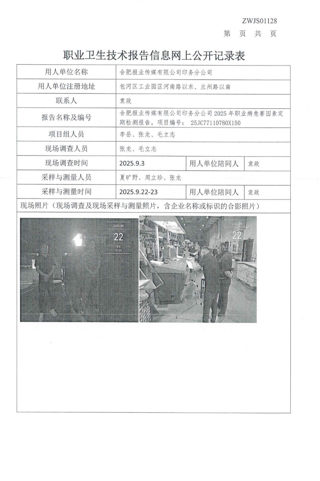 合肥報業(yè)傳媒有限公司印務(wù)分公司2025年職業(yè)病危害因素定期檢測報告