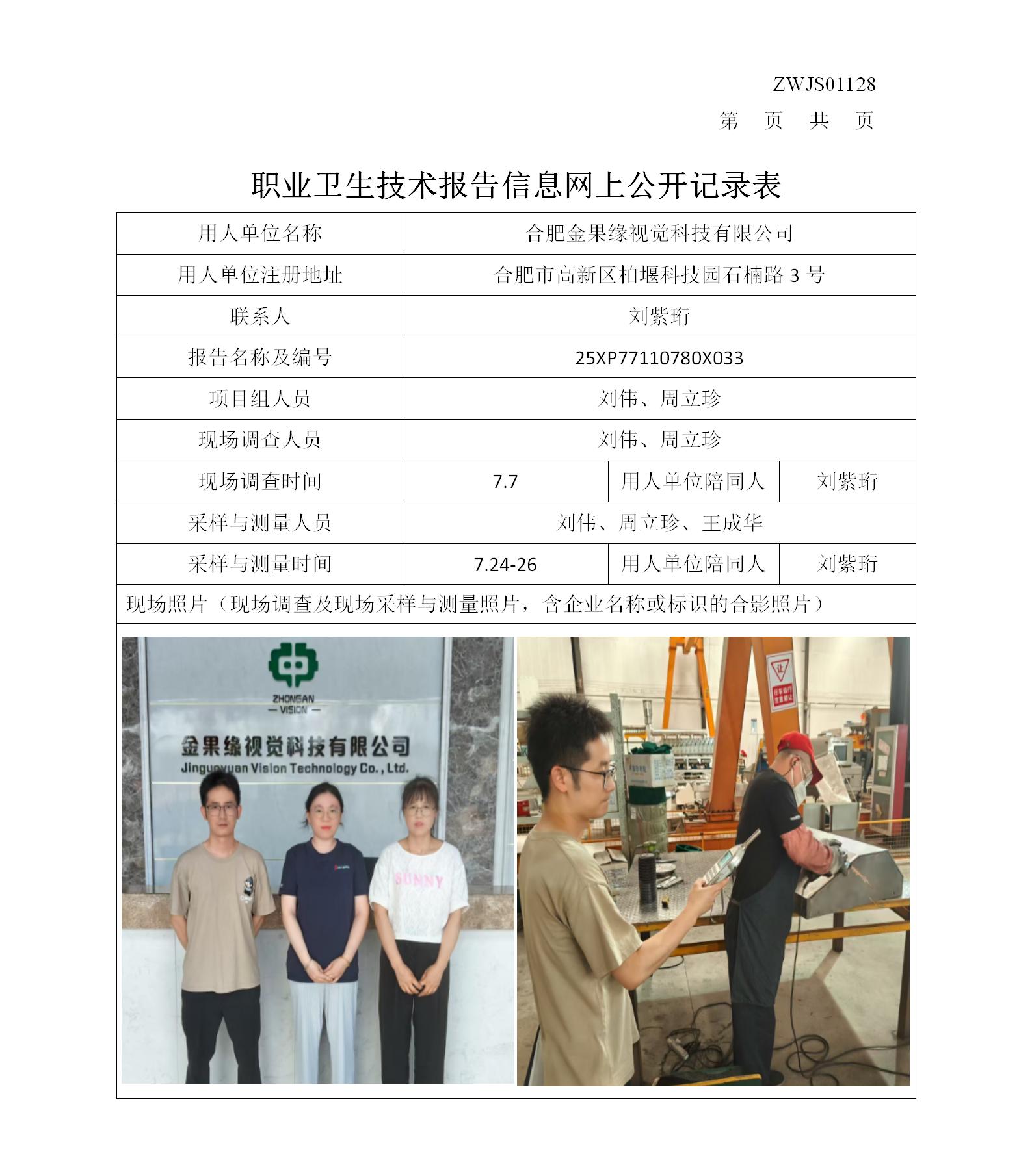 合肥金果緣視覺科技有限公司職業(yè)病危害現(xiàn)狀評價報告