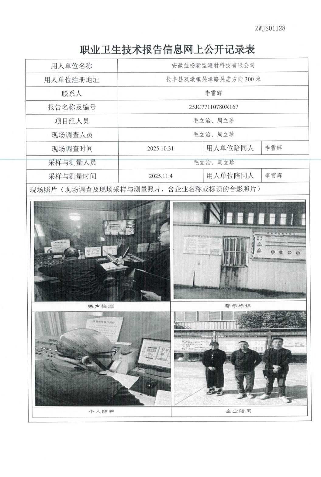 安徽益暢新型建材科技有限公司職業病危害因素定期檢測報告