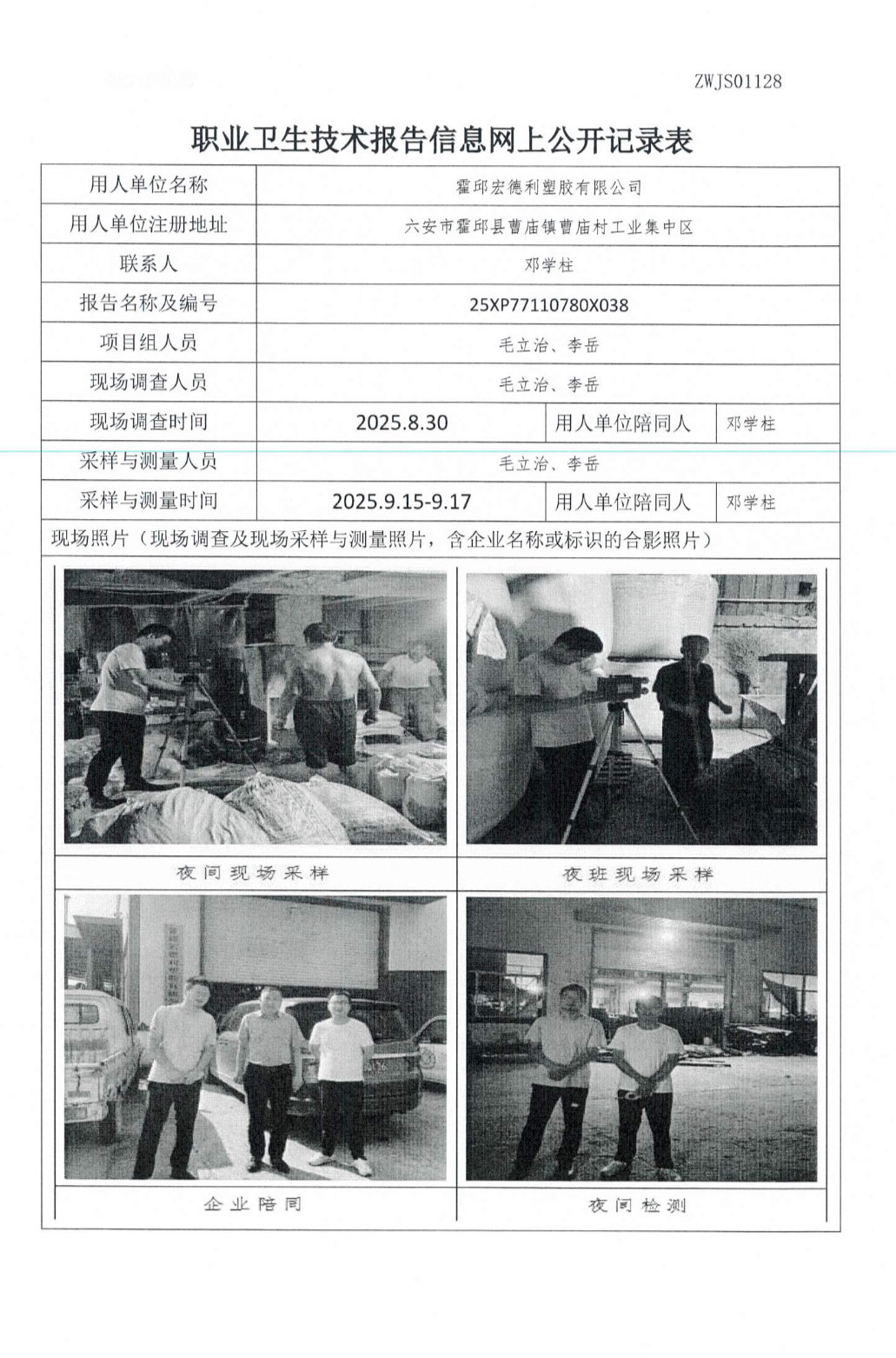 霍邱縣宏德利塑膠有限公司職業病危害現狀評價