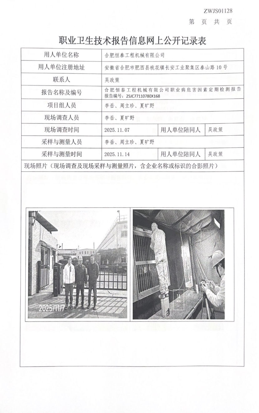 合肥恒泰工程機(jī)械有限公司職業(yè)病危害因素定期檢測報(bào)告