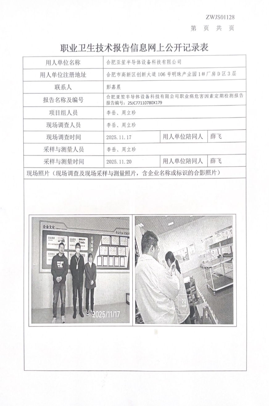 合肥亞笙半導(dǎo)體設(shè)備科技有限公司職業(yè)病危害因素定期檢測(cè)報(bào)告