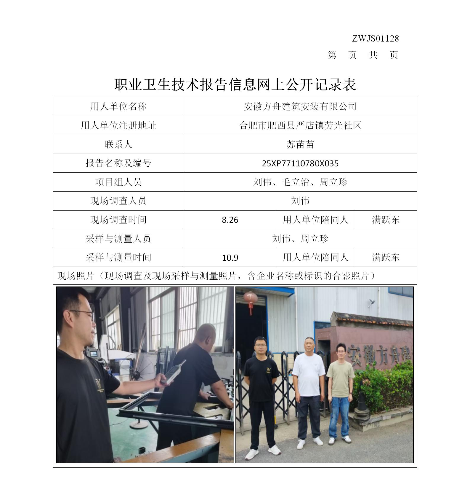 安徽方舟建筑安裝有限公司職業(yè)病危害現(xiàn)狀評(píng)價(jià)報(bào)告