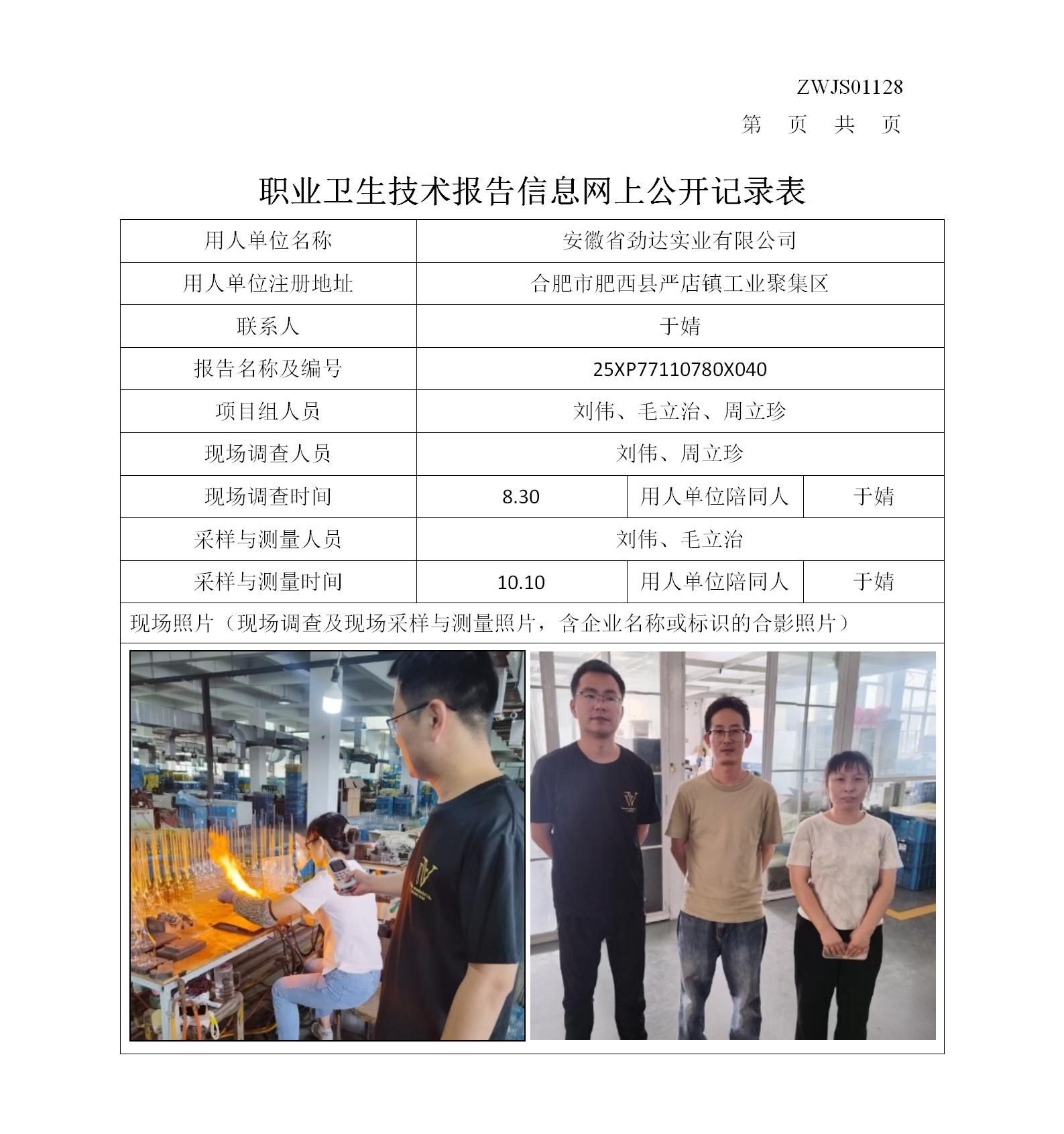 安徽省勁達實業有限公司職業病危害現狀評價報告