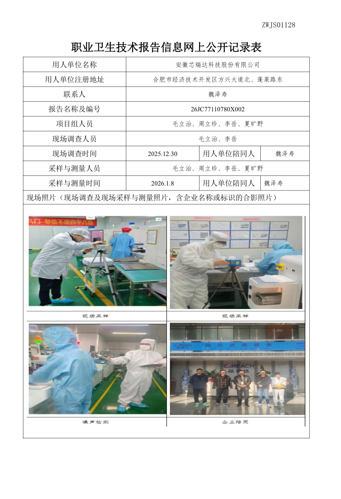 安徽芯瑞達科技股份有限公司2026年職業病危害因素定期檢測報告